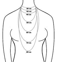 Onze standaard kettingen zijn 40-45 cm en bij een aantal modellen kun je kiezen uit meerdere lengtes.